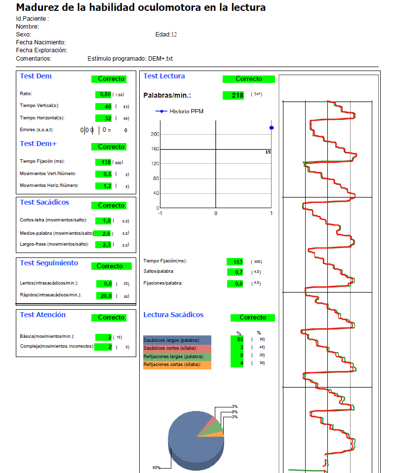 It's an ocular motility device that measures and analyzes the ocular motility disorders. It measures Strabismus (Tropias and Phorias) horizontal and vertical deviation, palsy eyes, restrictions). And also analyzes the reading maturity, predefined texts, customized texts, you could make DEM+ test, attention test, sacaccade test and so on.